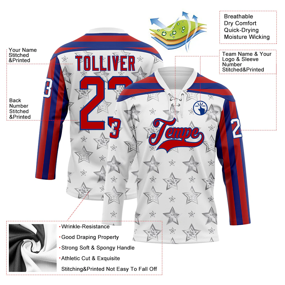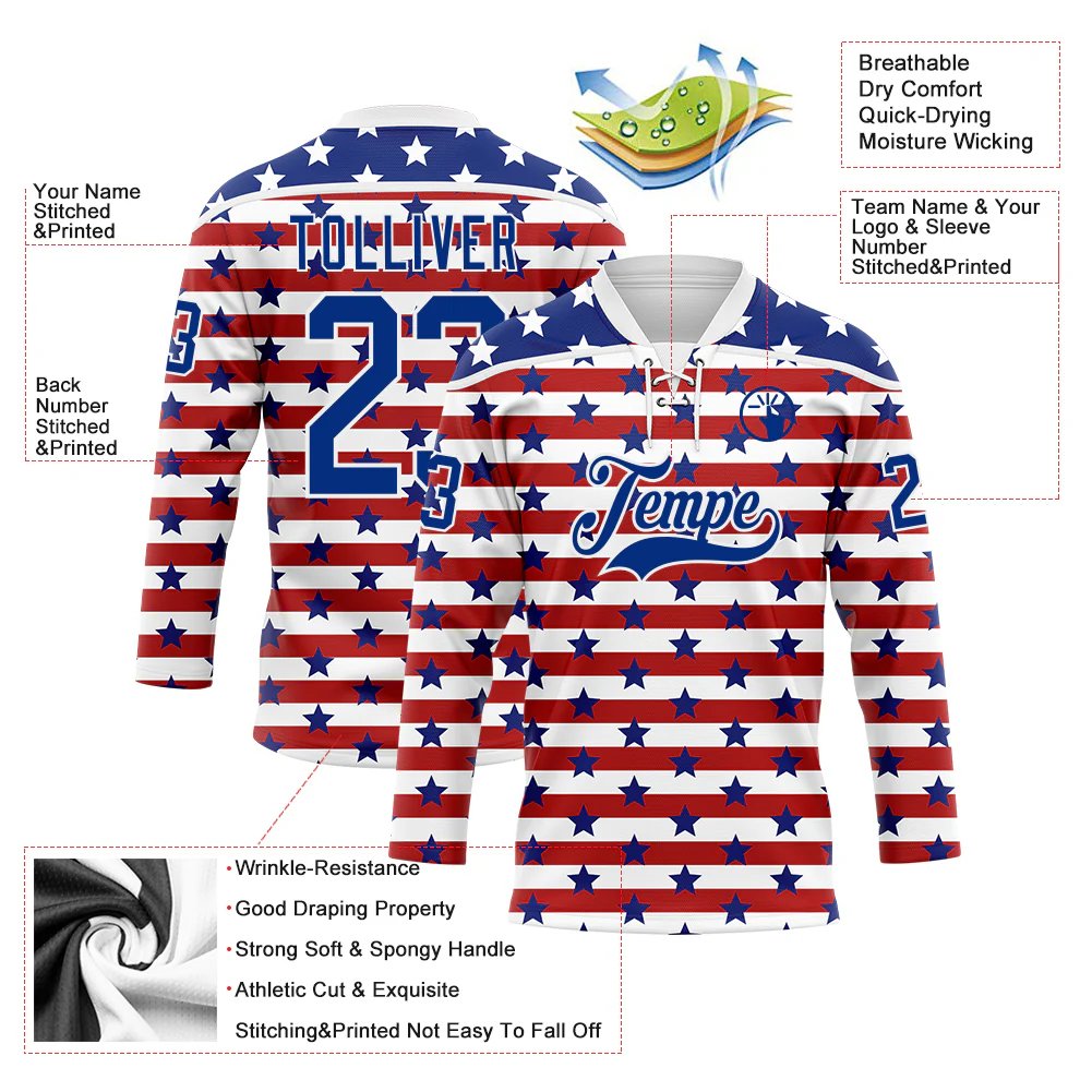 Custom White Red-Royal American Flag Hockey Lace Neck Jersey