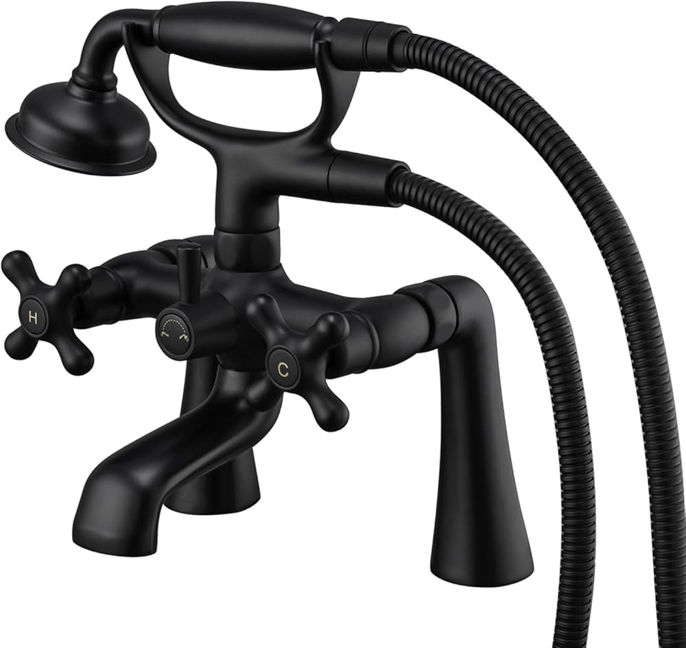 Clawfoot Tub Faucet Deck Mount Tub Filler Black Vintage Brass Bathtub Faucets with Telephone Shaped Hand Shower
