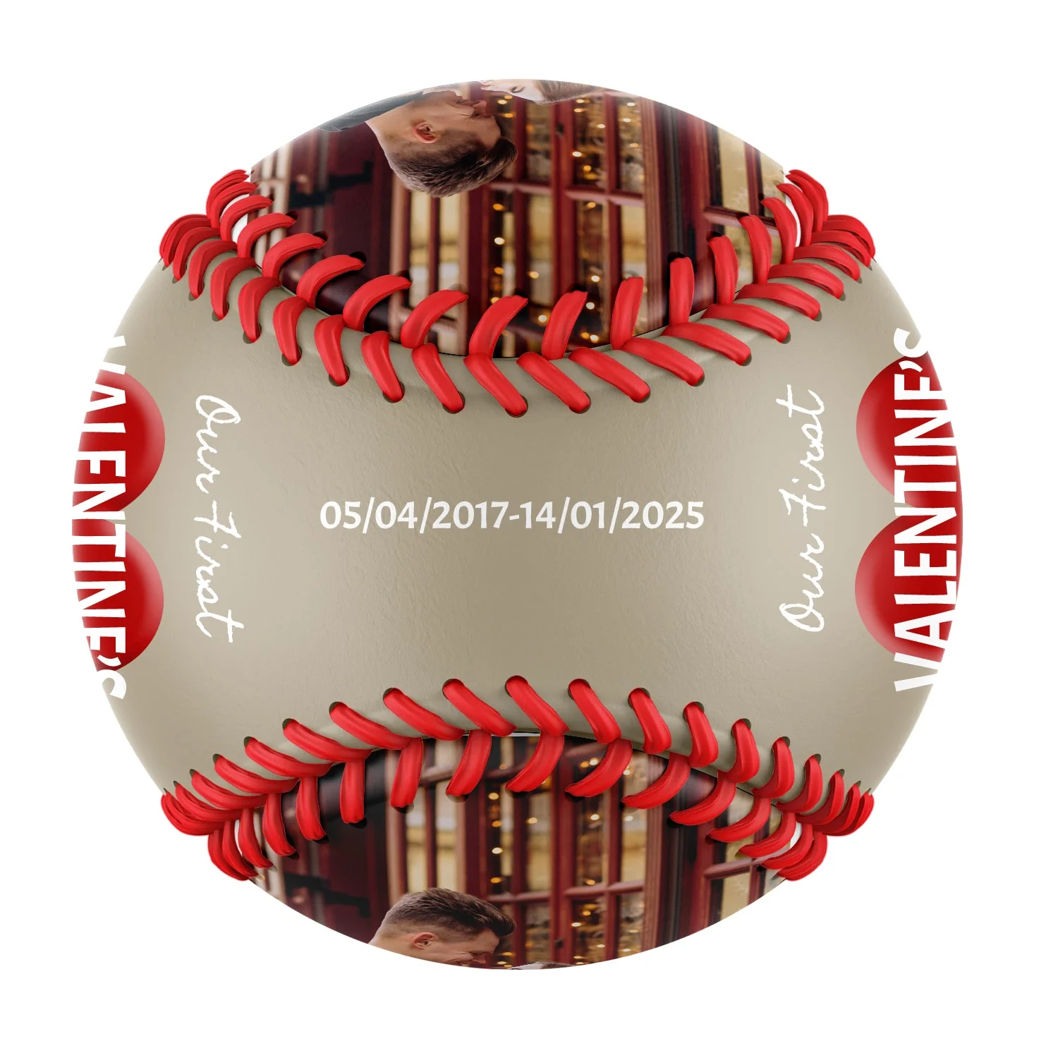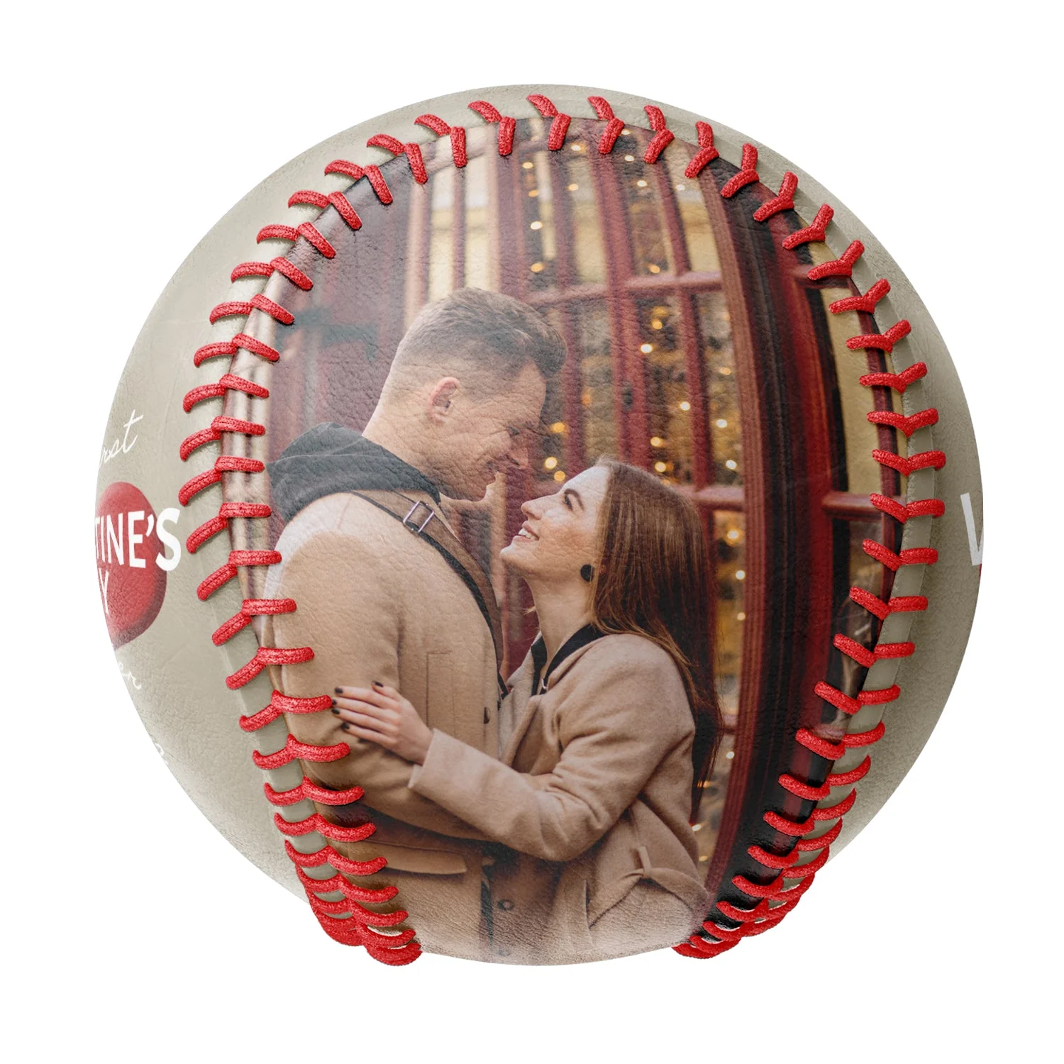 Our First Valentine's Day Together Personalized Anniversary Name Date Photo Khaki Baseballs