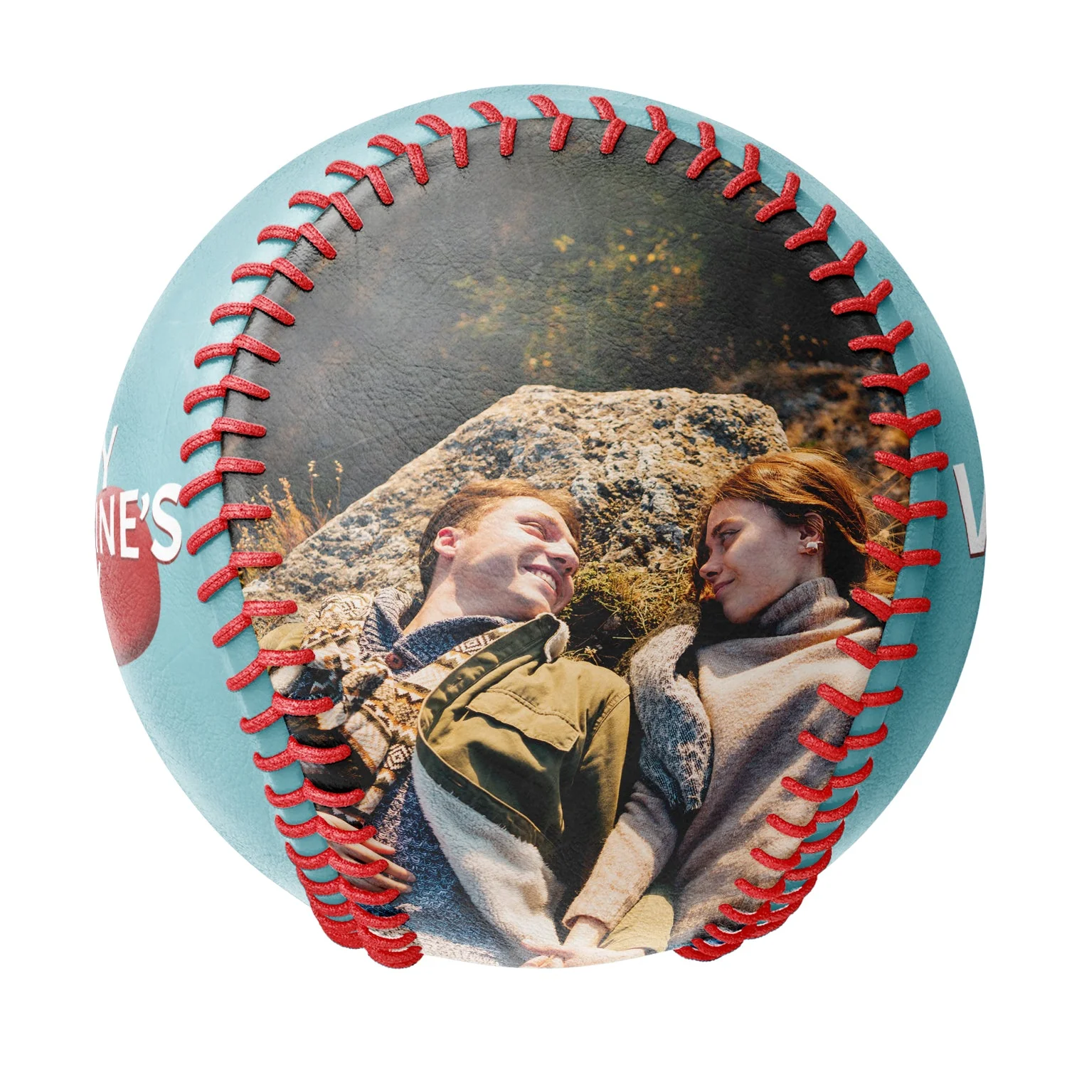 Happy Valentine's Day Personalized Anniversary Name Date Photo Blue Baseballs