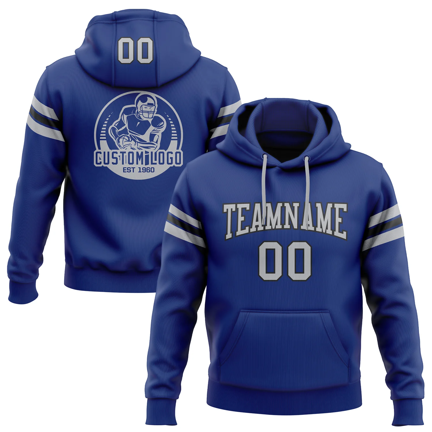 Custom Stitched Royal Gray-Black Football Pullover Sweatshirt Hoodie