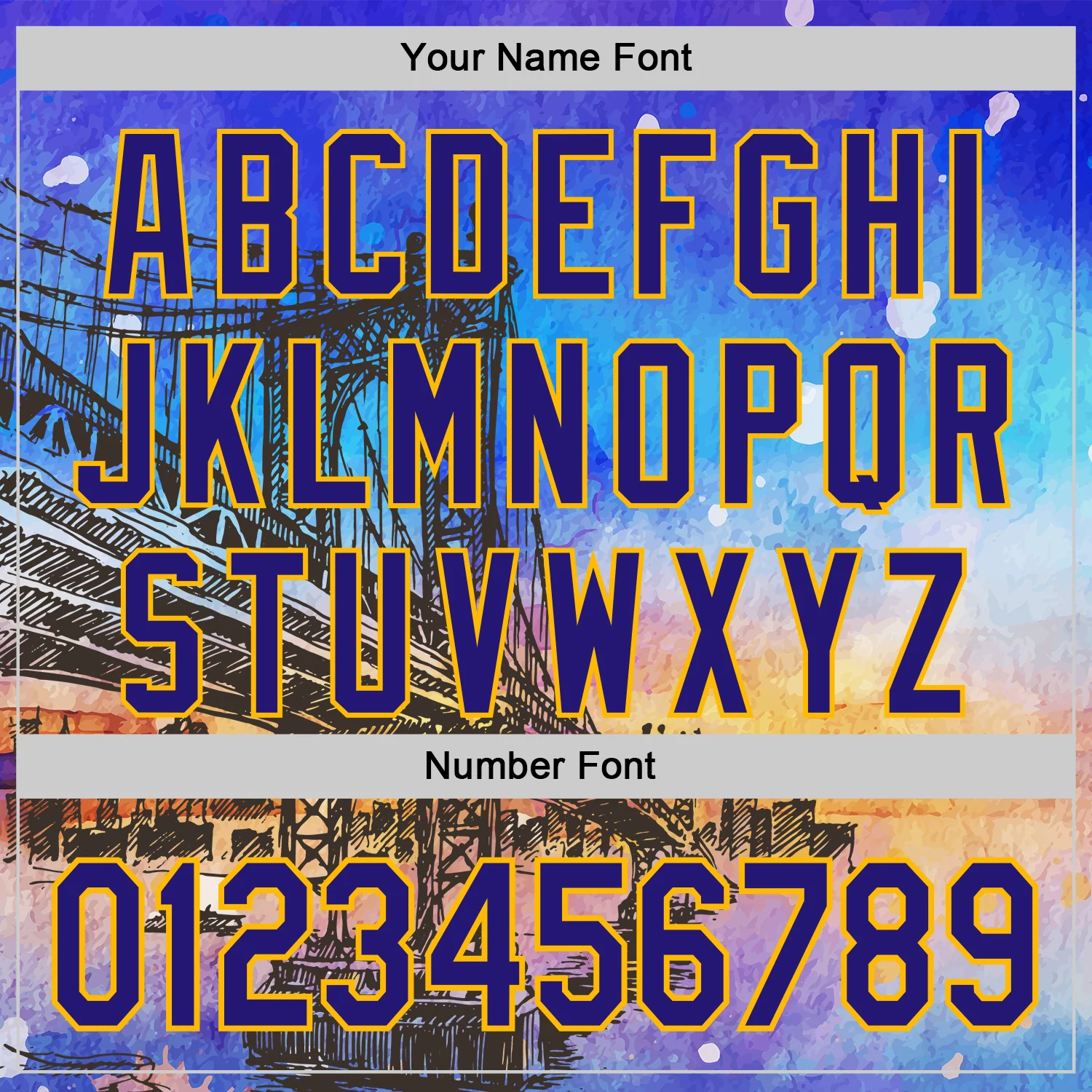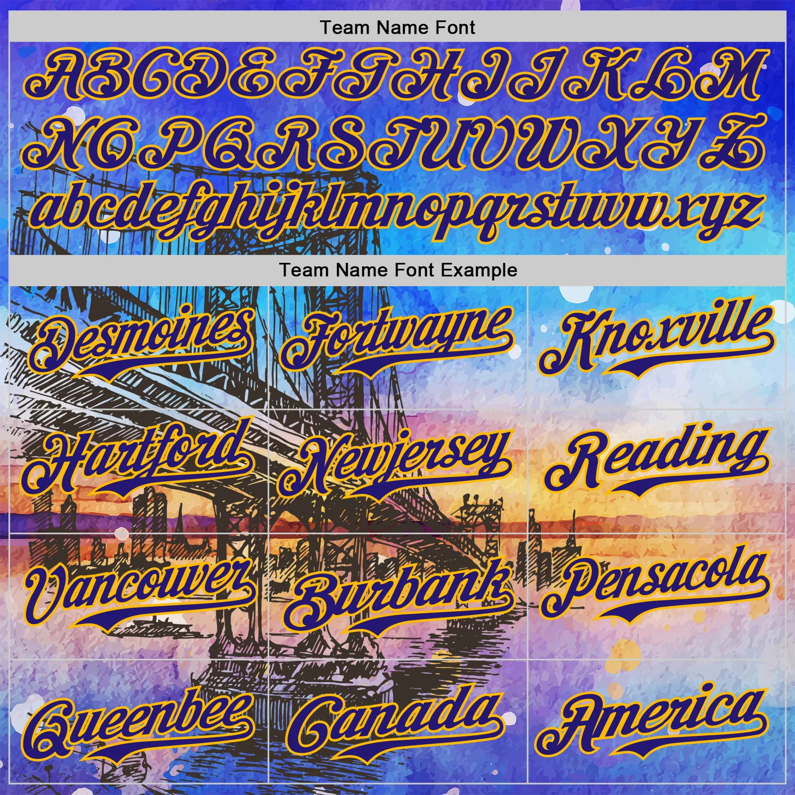 Custom Blue Dark Purple-Gold 3D Pattern Design Manhattan Bridge New York Sunset Authentic Baseball Jersey