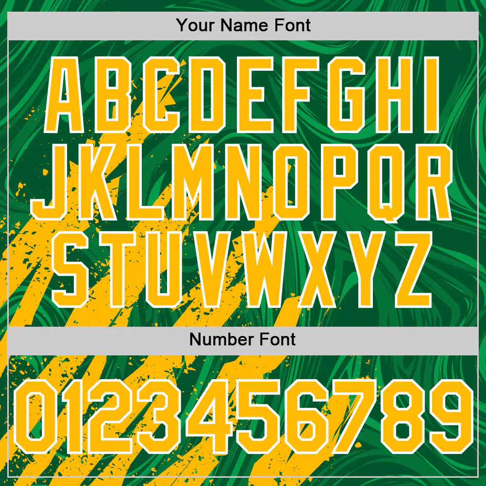 Custom Kelly Green Gold-White Splash 3D Pattern Design Bomber Full-Snap Varsity Letterman Hoodie Jacket